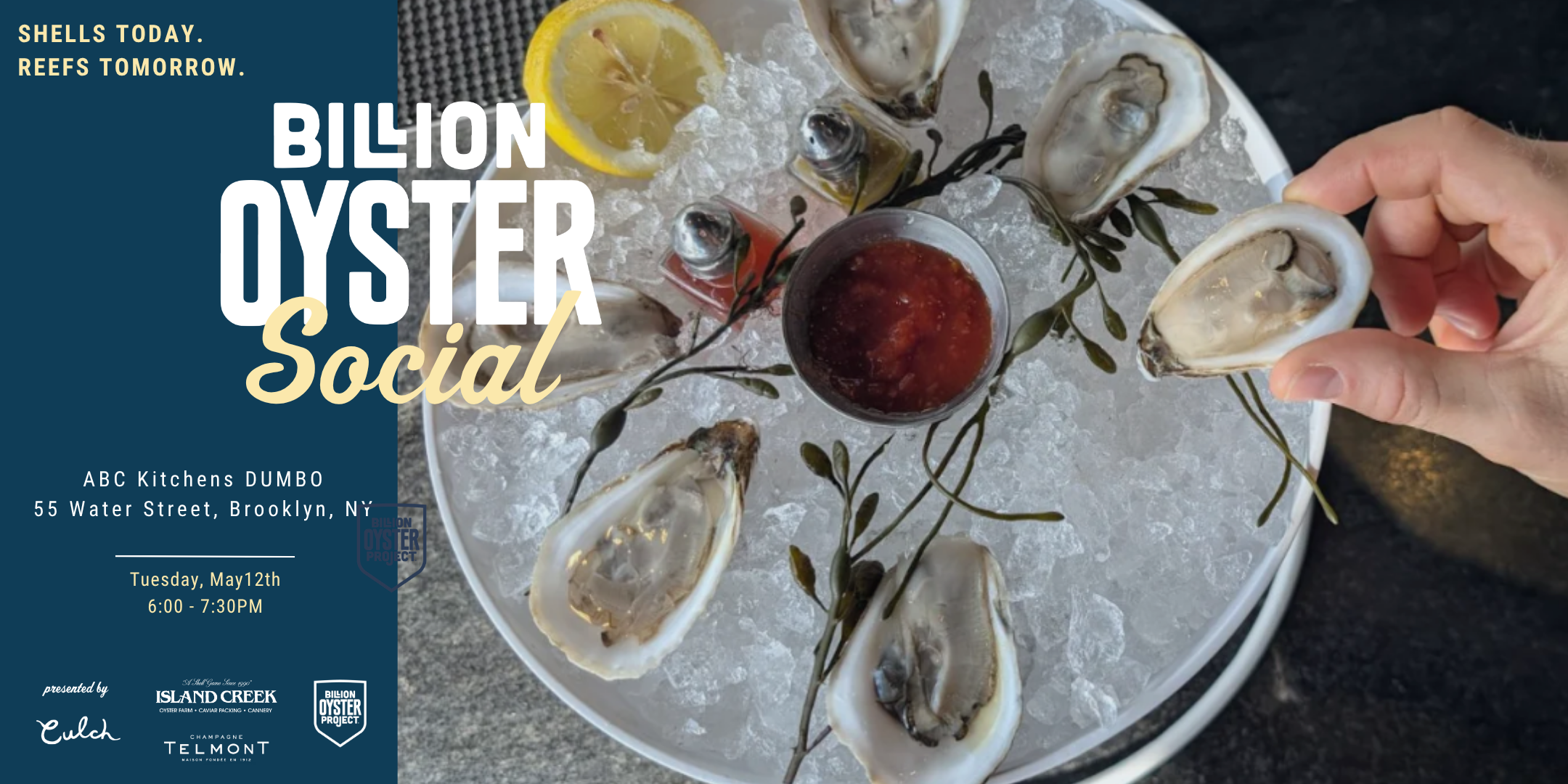 Throughout the evening our hosts from Billion Oyster Project, abc kitchens, and sponsors will discuss the pairings along with the oyster’s historical and ecological role in New York City. Guests will also hear an overview of Billion Oyster Project's recent work, abc kitchens’ role in our Shell Recycling Program, and find new ways to get involved on the waterfront in 2026.